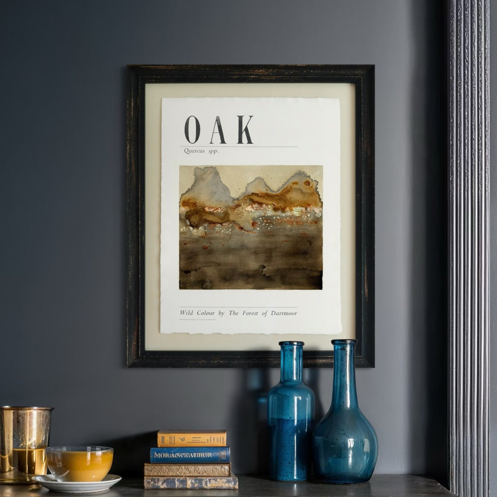Oak gall ink has been used as official record keeping ink for hundreds of years due to its permanence. We anticipate the botanical ink will change over time. Every precaution has been taken to slow this inevitable change, including pretreating the paper, and using UV-protective art glass for the framing. Still, we encourage you to take a photo of the work every year on its anniversary so that you can record its progression over time. The letterpress ink is a custom blend from British ink makers, Hawthorn, and rated above 5 on the Blue Wool Scale and rated at the level needed for artists.